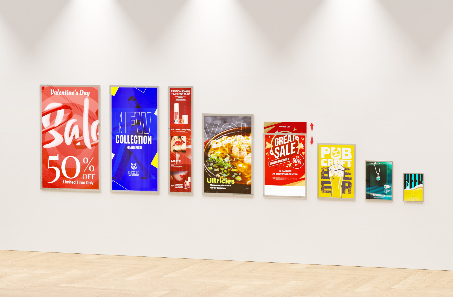 600×350mm/900×350mm/1200×450mm Sliding tochange graphics,Double-sided display